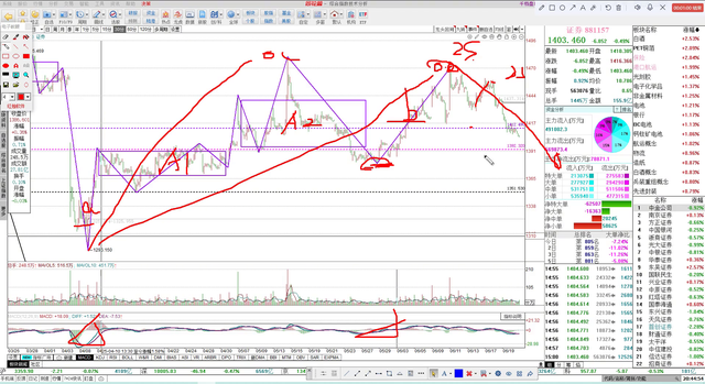 各位朋友,接着讲一下证券。证券这个位置这段的下跌没有结束,我的观点还是维持不变,里边其实走了这样的走势。如果按笔来划分就是这样的走势,现在这里可以看成是一笔下跌,因为这个位置没有过弦高股票配资网官网,所以这里是三十分钟球二脉。